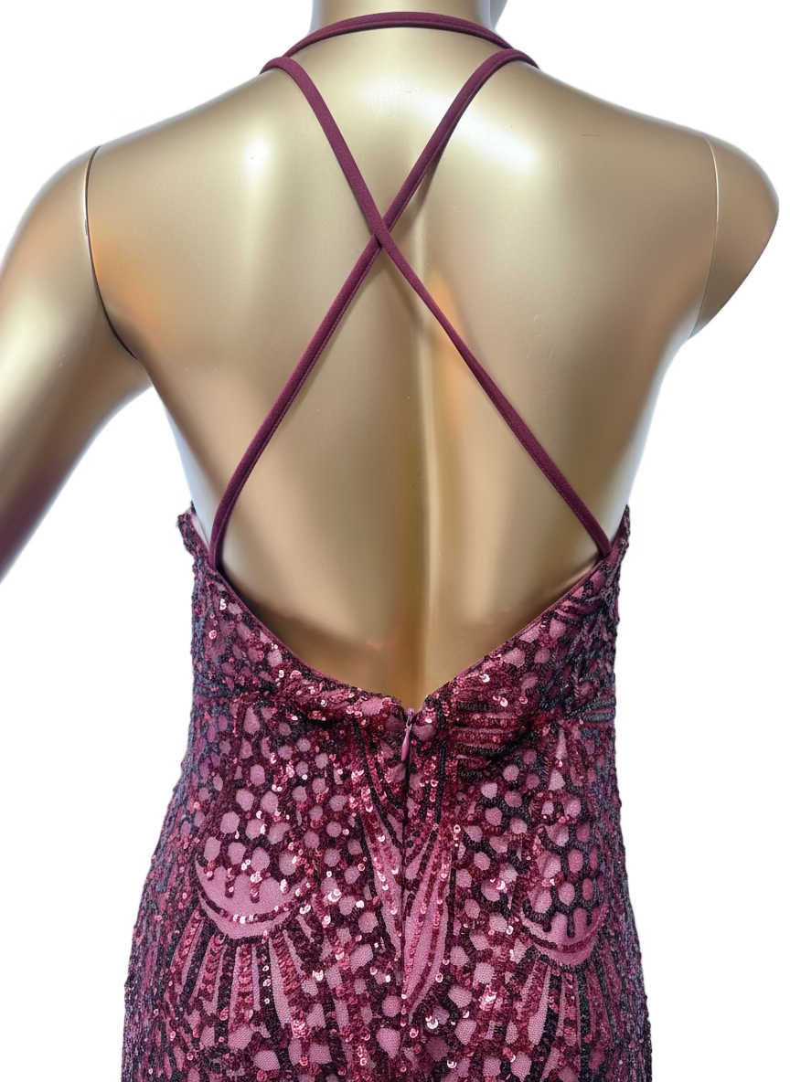 Vestido largo con pedrería vino Night Way Talla 10 usado