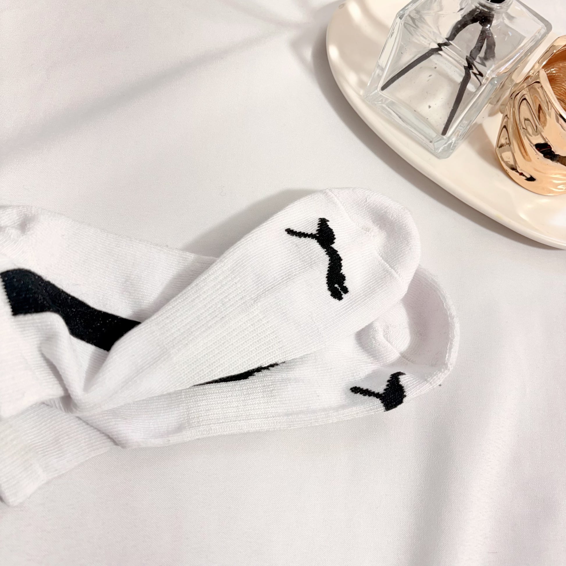 Par de medias deportivas Puma en color blanco con detalles en negro, diseñadas para ofrecer máxima comodidad y rendimiento en el uso diario o durante entrenamientos. 🧦💪