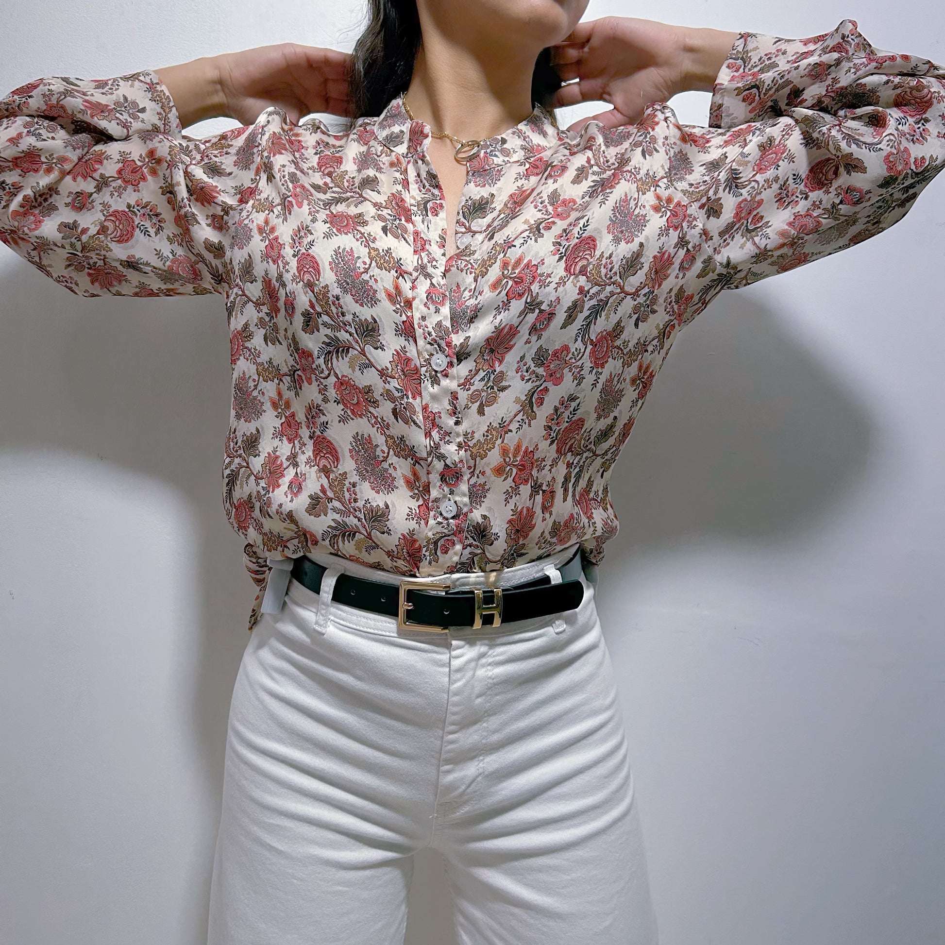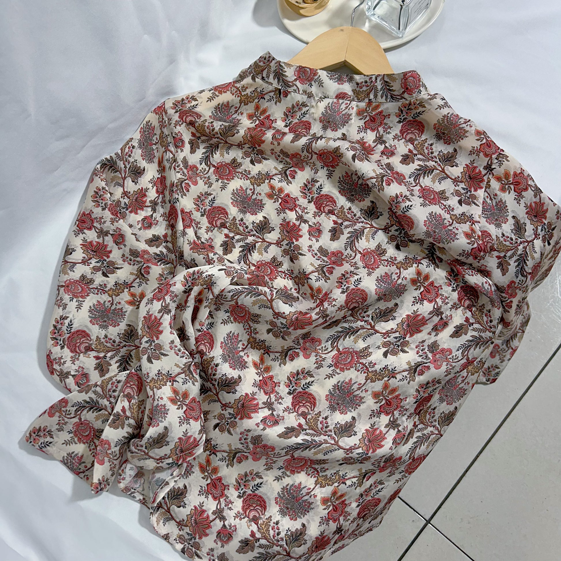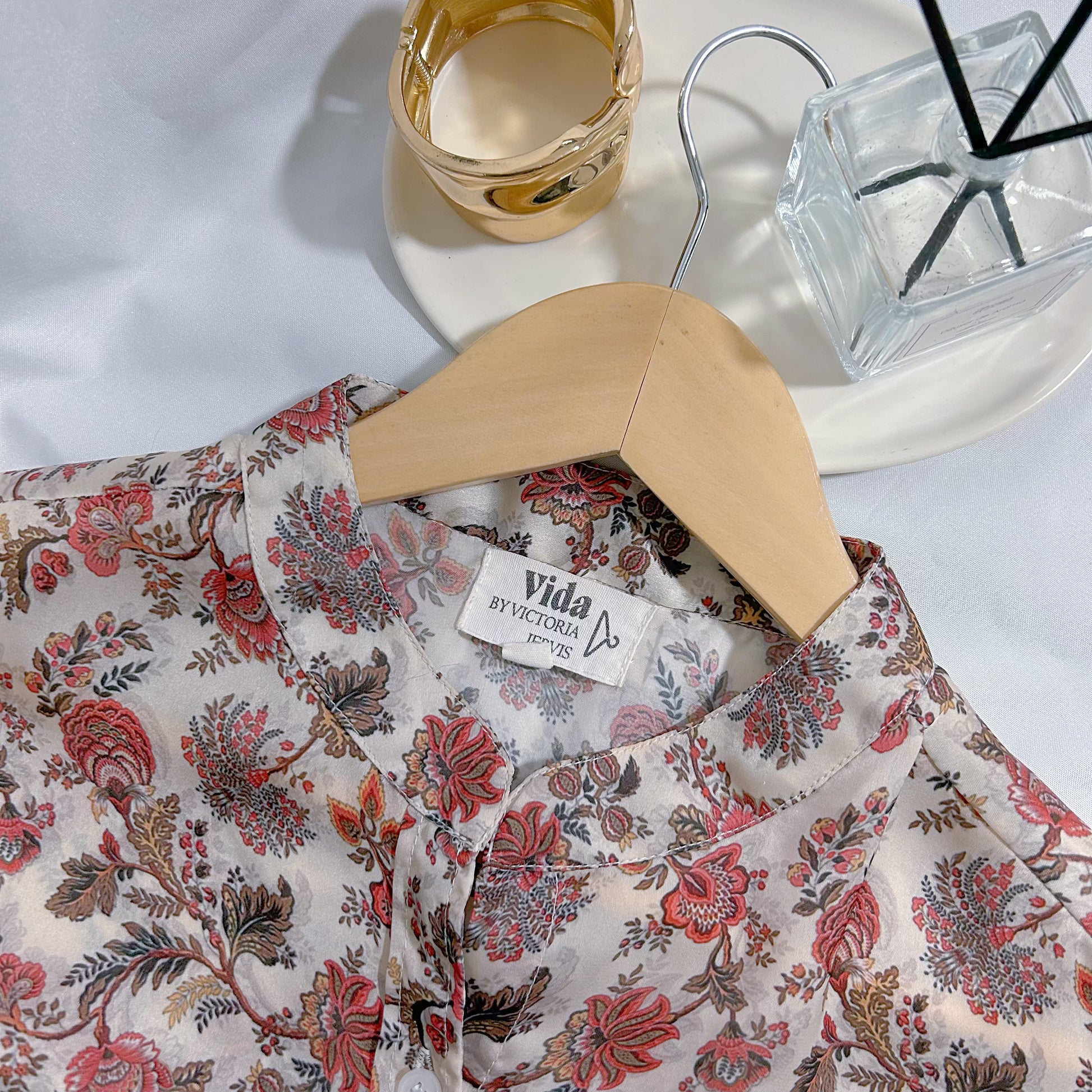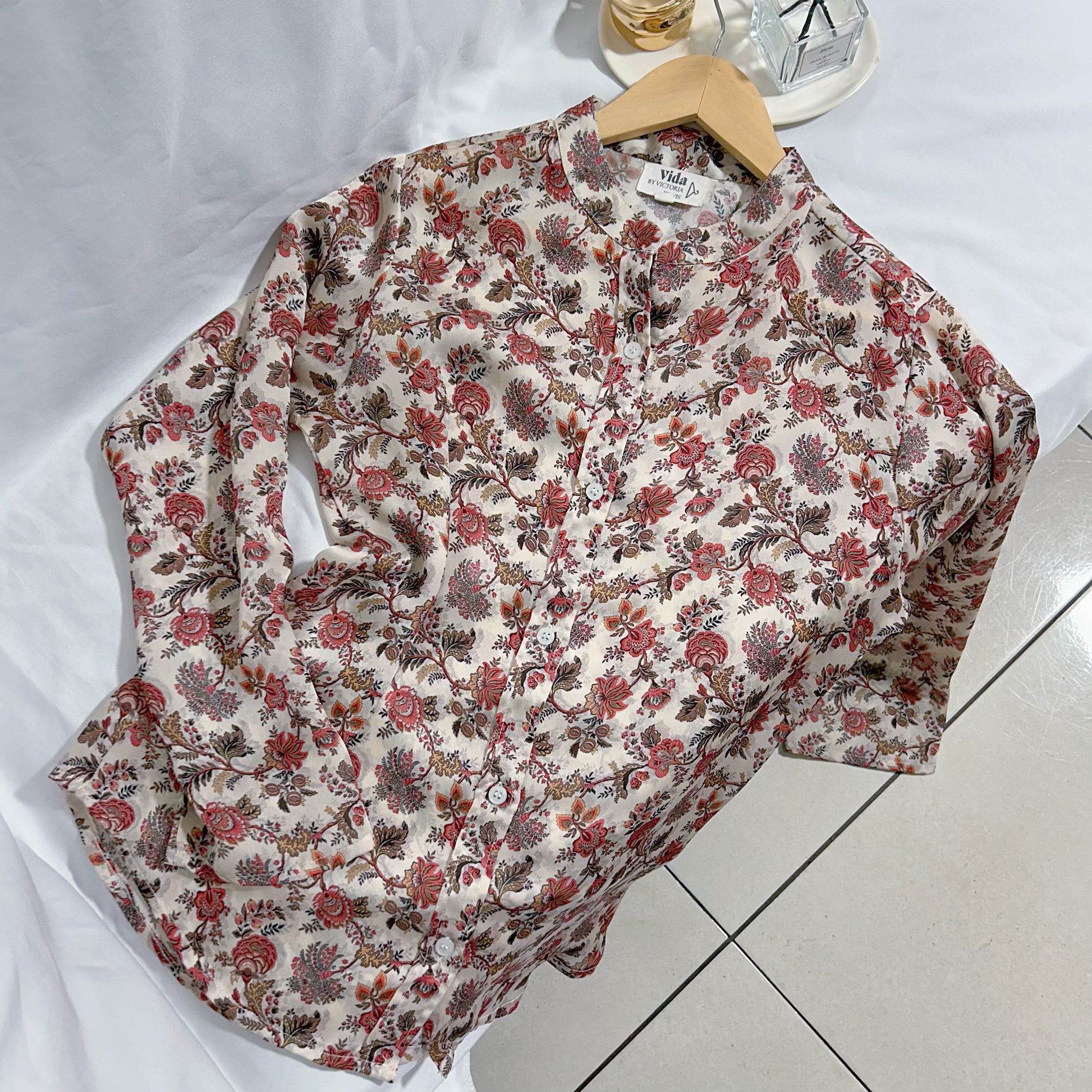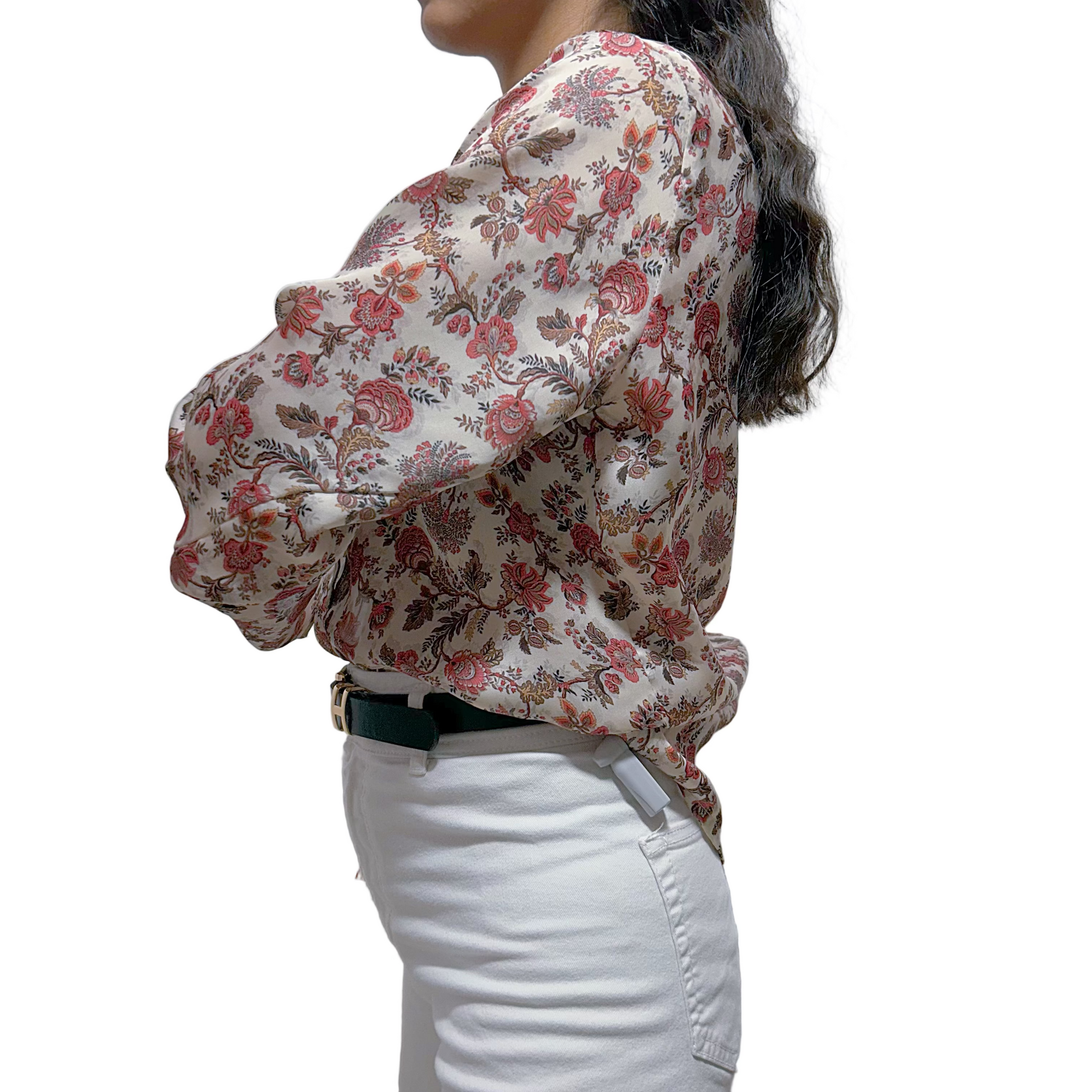 Blusa satinada de la marca Vida by Victoria Jervis, con un encantador estampado floral en tonos rosados, beige y marrón, perfecta para un look romántico y sofisticado. Su textura suave y brillante realza la elegancia natural de la prenda, aportando un toque de distinción y feminidad.