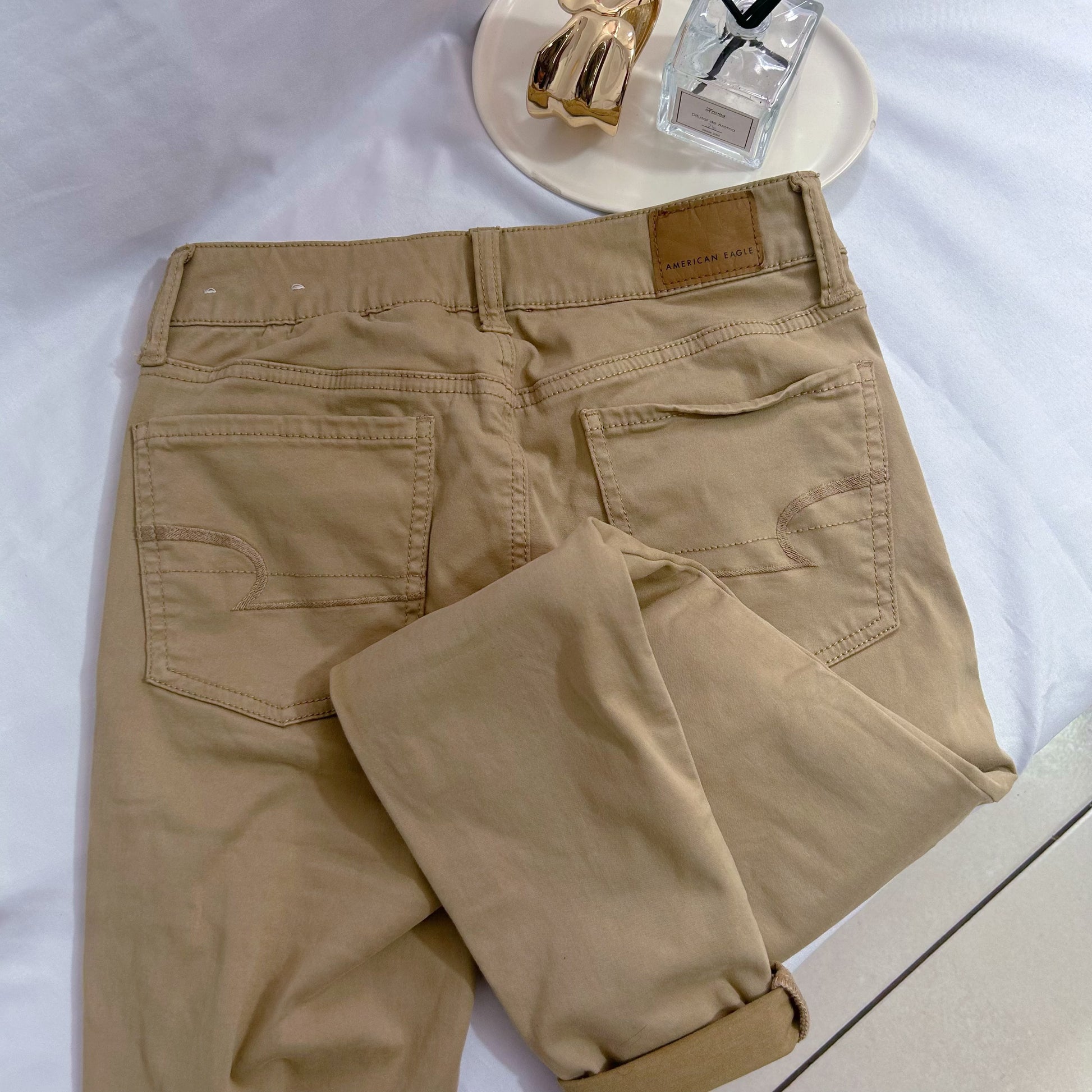 Jeans American Eagle en tono camel/claro, confeccionado en mezclilla suave con alto contenido de stretch, ofreciendo comodidad y ajuste perfecto al cuerpo. Su diseño skinny estiliza la figura desde la cintura hasta los tobillos, ideal para looks casuales y versátiles del día a día. ✨
