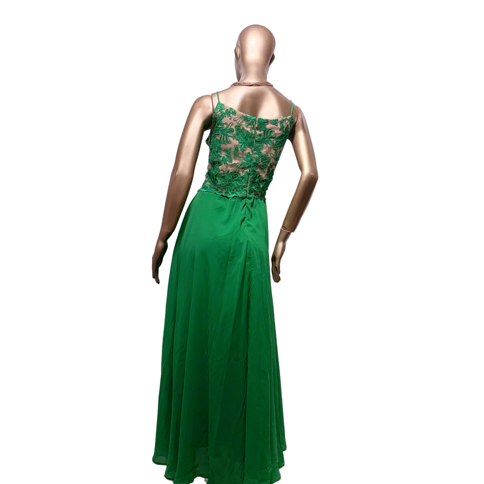 Vestido de Gala Verde Esmeralda con Bordado Floral Usado