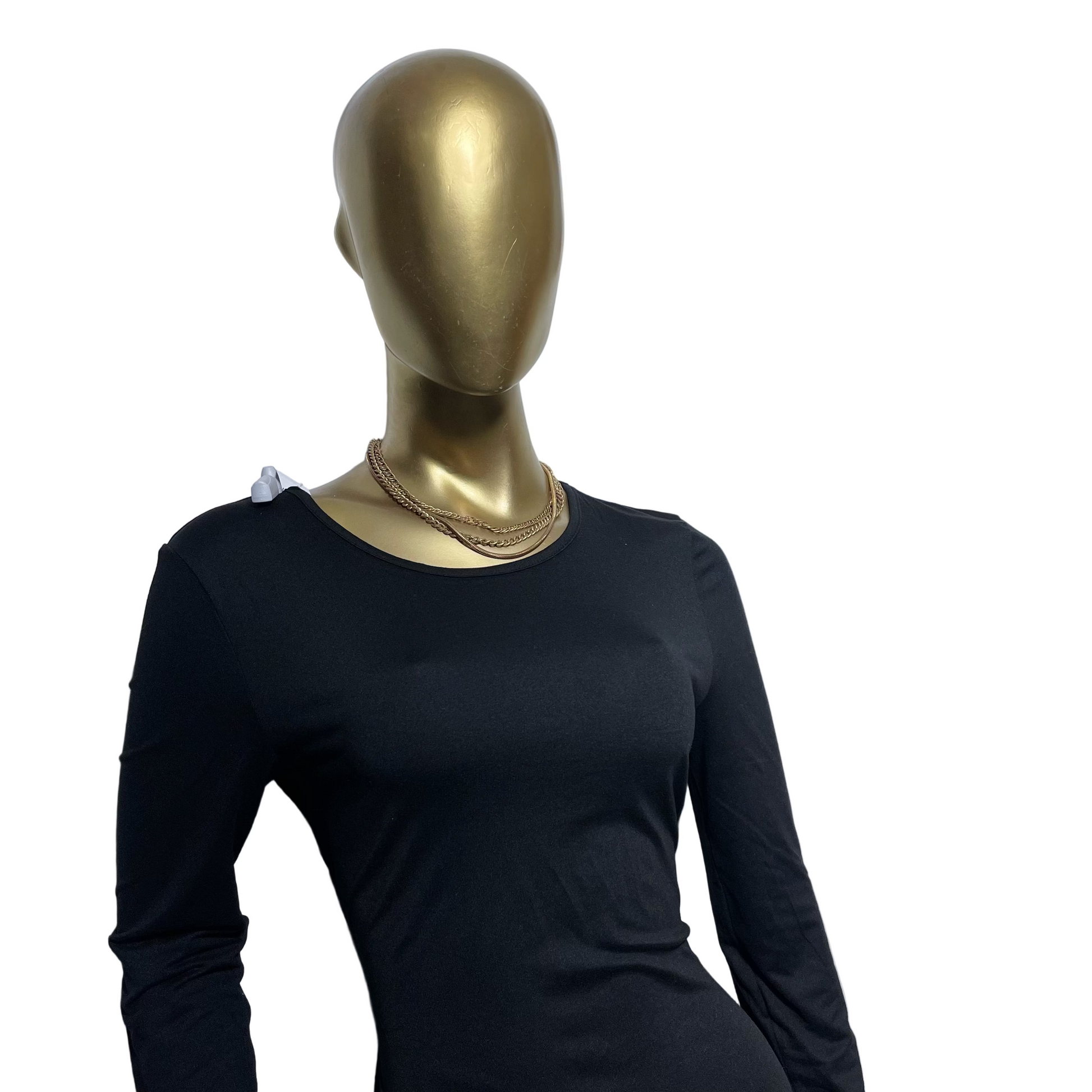 Presenta un escote redondo clásico y un diseño minimalista, ideal para quienes prefieren un look limpio y sofisticado. Su corte resalta la silueta sin perder la comodidad, perfecto para usar tanto de día como de noche.