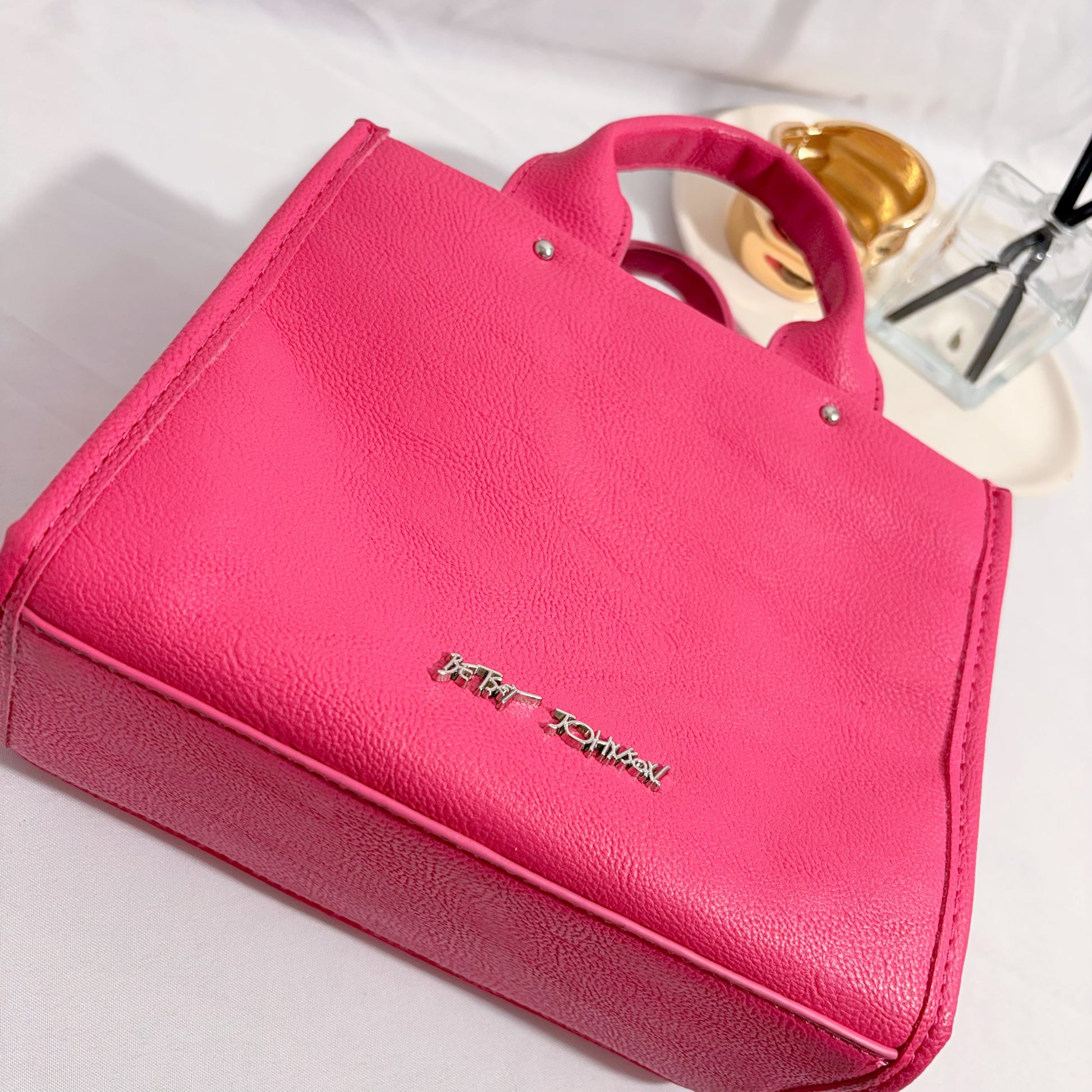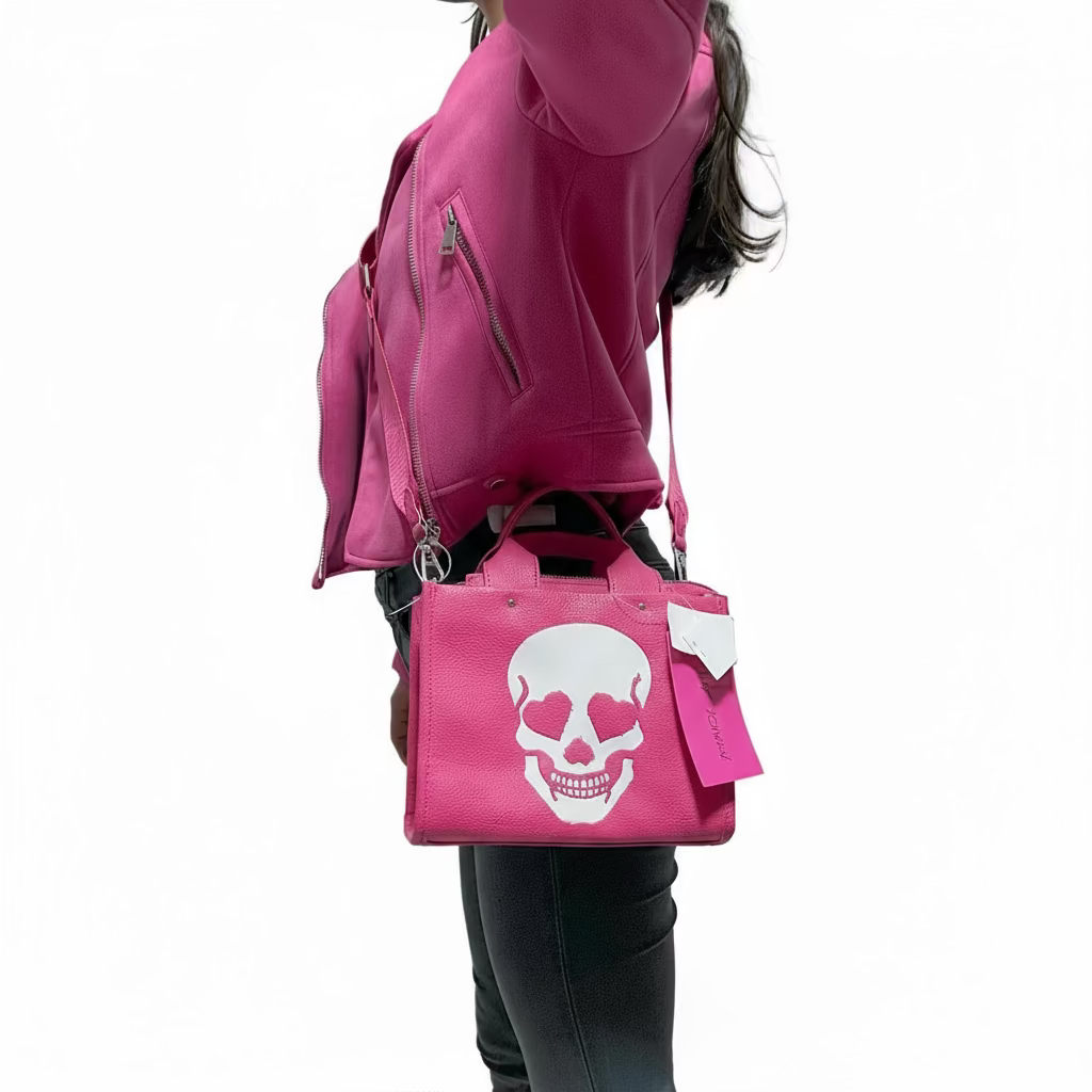 Cartera Betsey Johnson en tono fucsia vibrante, confeccionada en cuero texturizado, que combina la estética atrevida y divertida característica de la marca. 💀✨