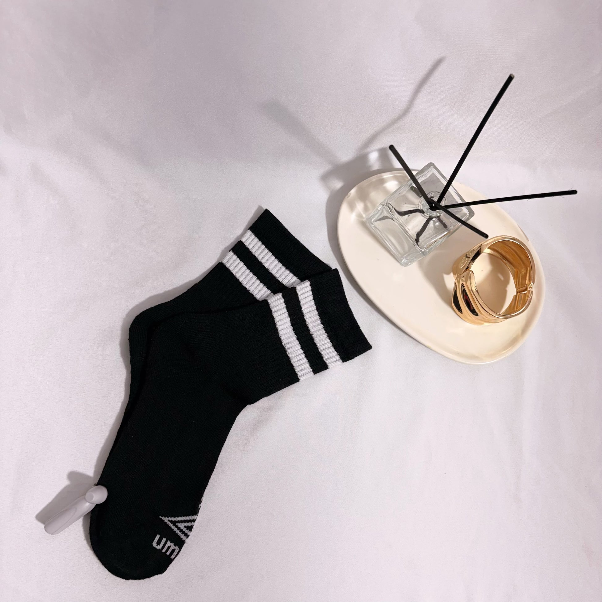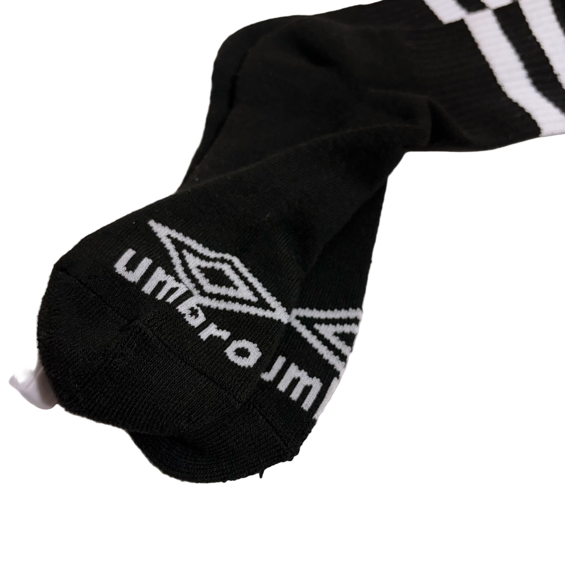 Par de medias deportivas Umbro en color negro con detalles en blanco, ideales para un look urbano o para acompañar tus rutinas deportivas. 🧦⚡