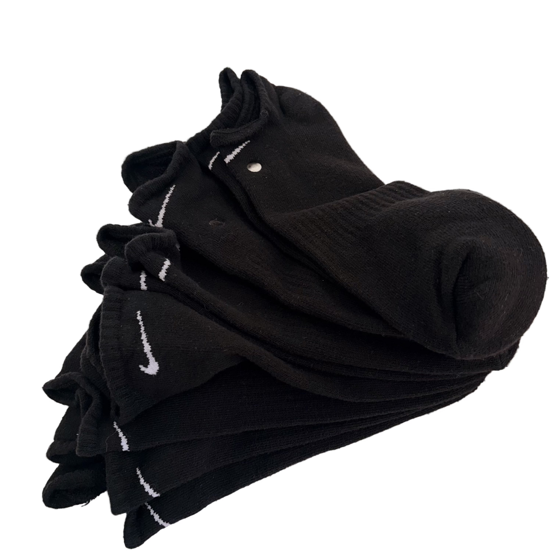 Pack de 12 pares de medias deportivas Nike en color negro clásico, confeccionadas con una mezcla de algodón, poliéster y spandex que garantiza comodidad, suavidad y ajuste perfecto durante todo el día. 🧦✨