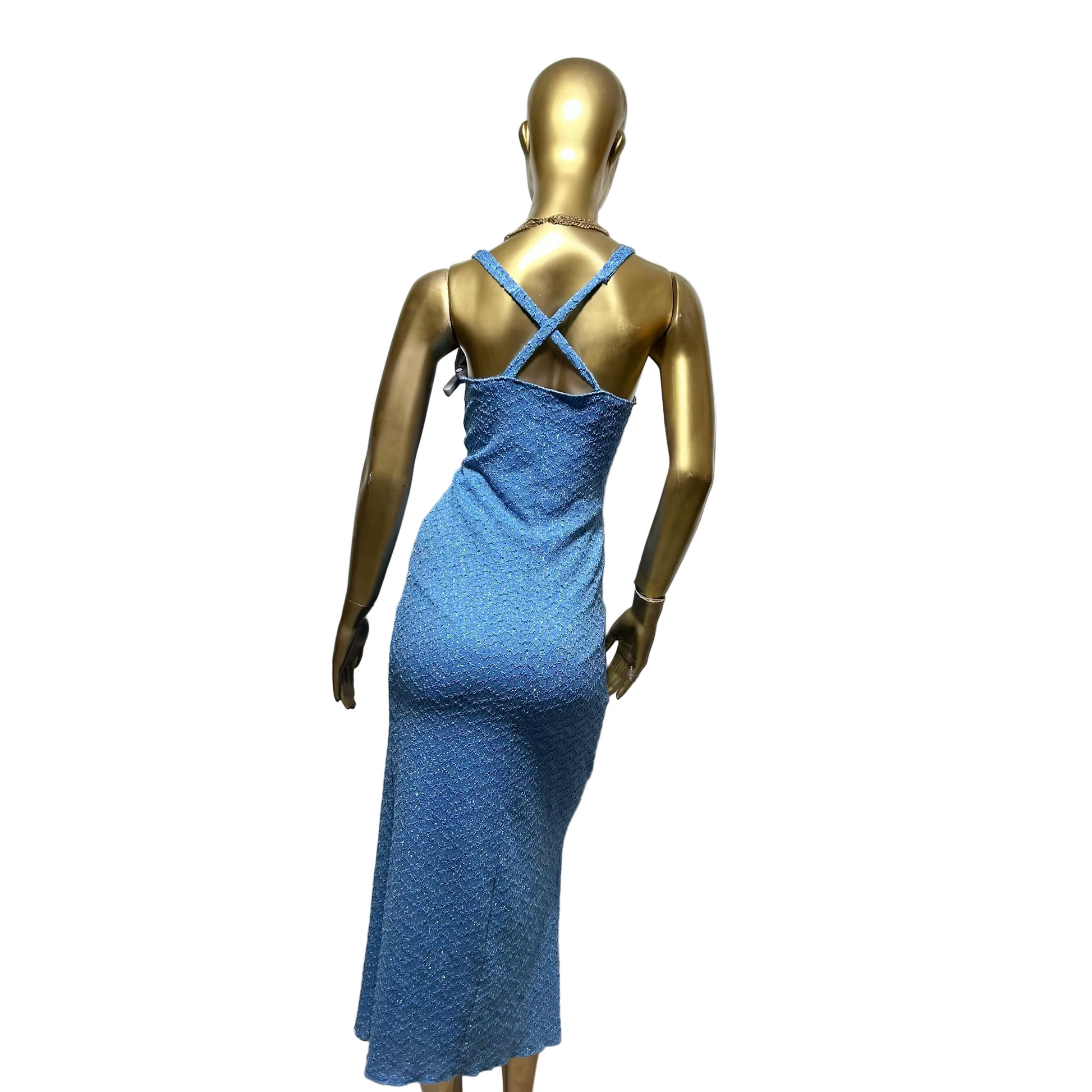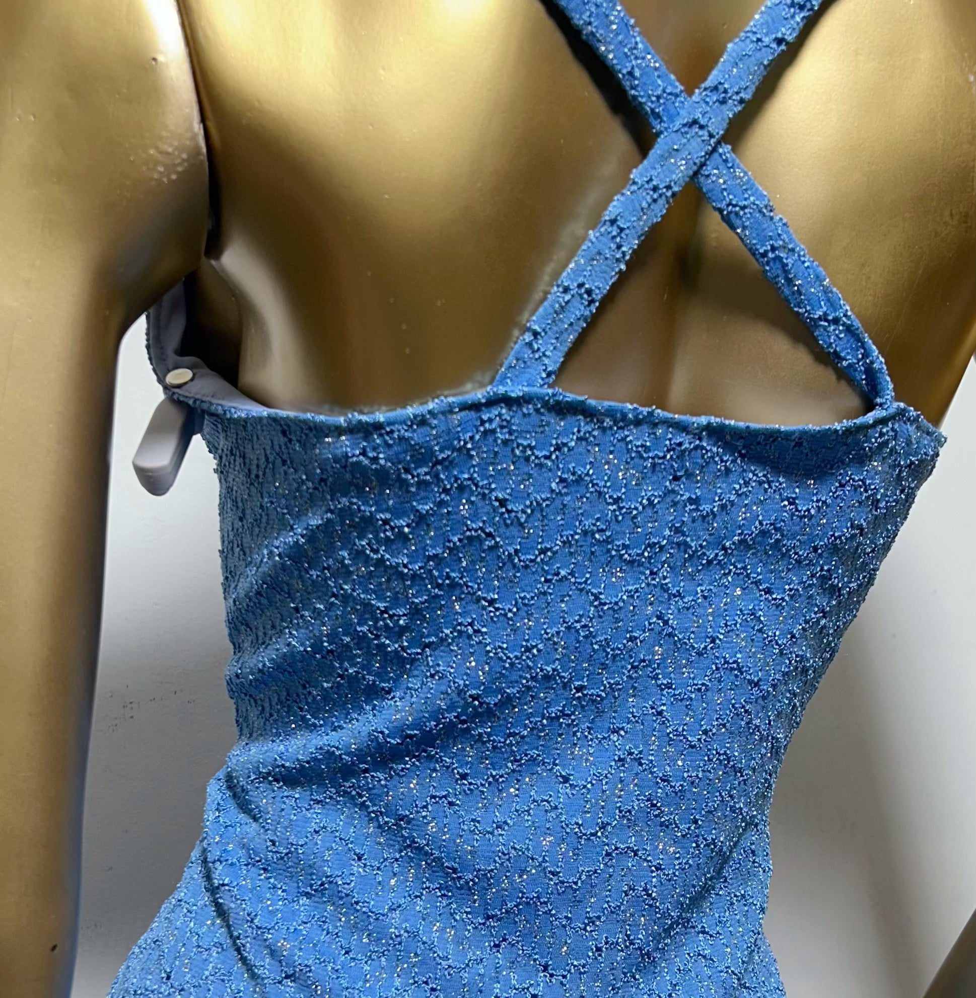 Vestido midi ajustado en un encantador tono azul brillante, confeccionado en tela elástica con acabado ligeramente satinado que se adapta al cuerpo resaltando la figura con elegancia. ✨