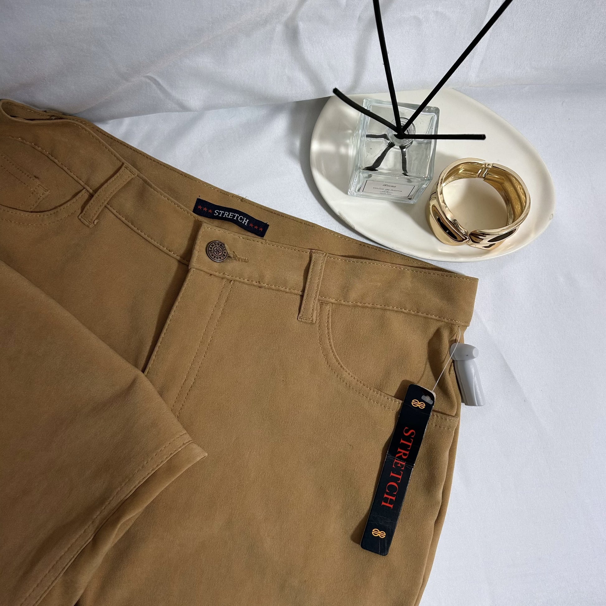 Aporta un aire sofisticado y elegante con este pantalón Bill Blass stretch, talla 8 para mujer, en color camel cálido y versátil. ✨