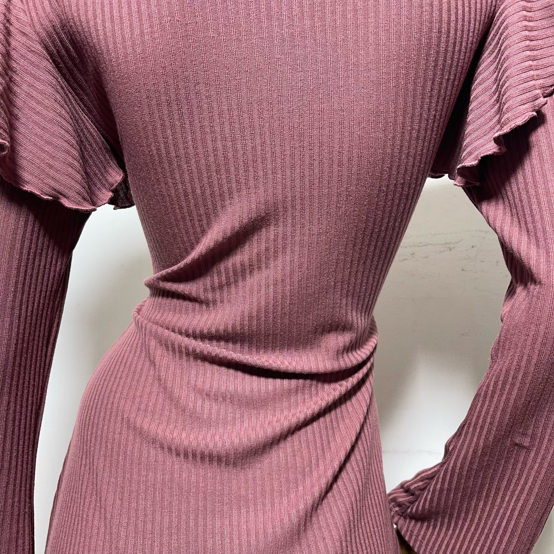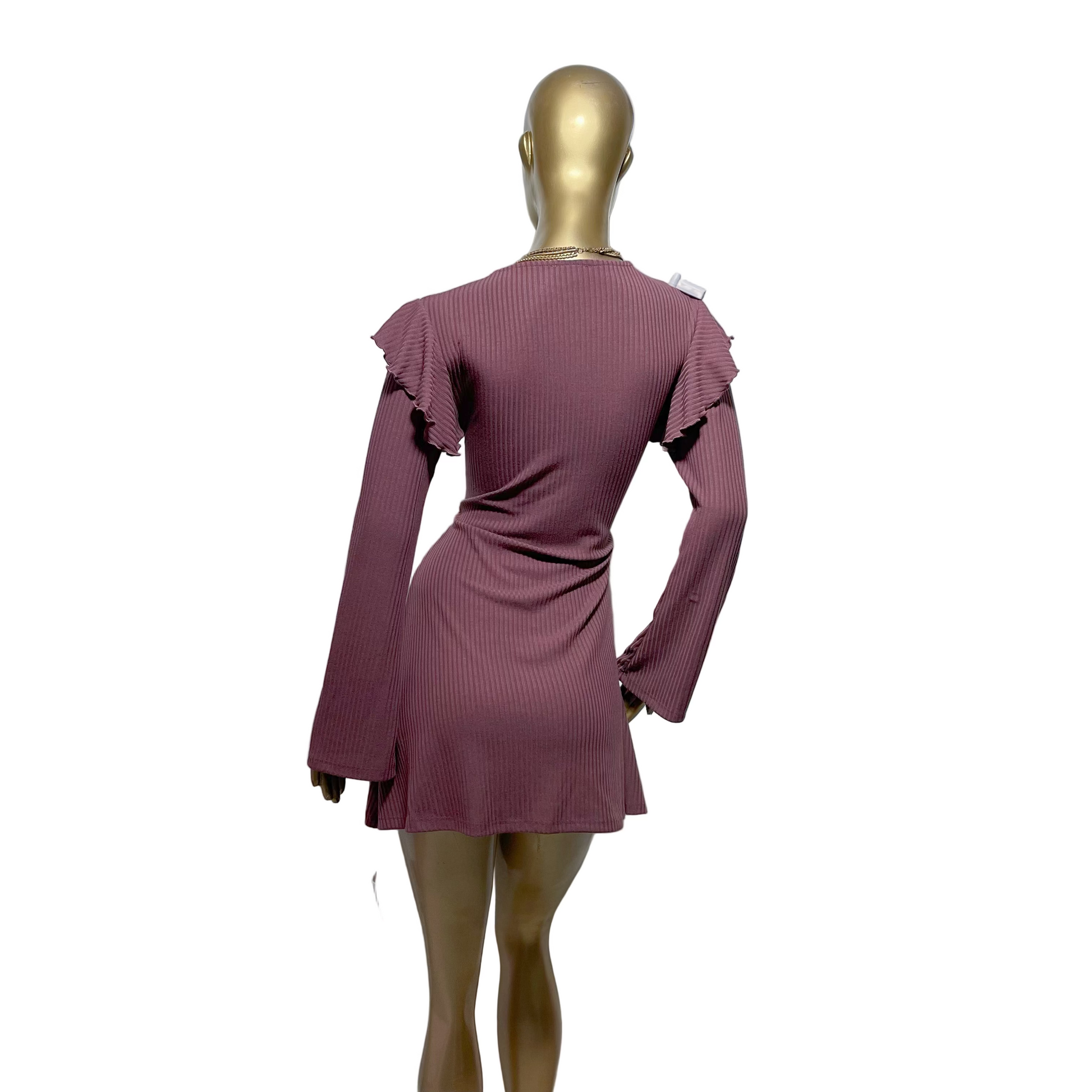 Vestido mini en tono rosa viejo, confeccionado en una tela acanalada de textura suave y elástica que se ajusta al cuerpo con comodidad y resalta la silueta. 💕